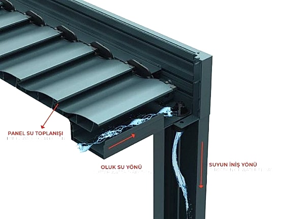 Panellere su toplanışı, oluk su yönü ve suyun tahliye şekli akıllıca dizayn edilmiştir.