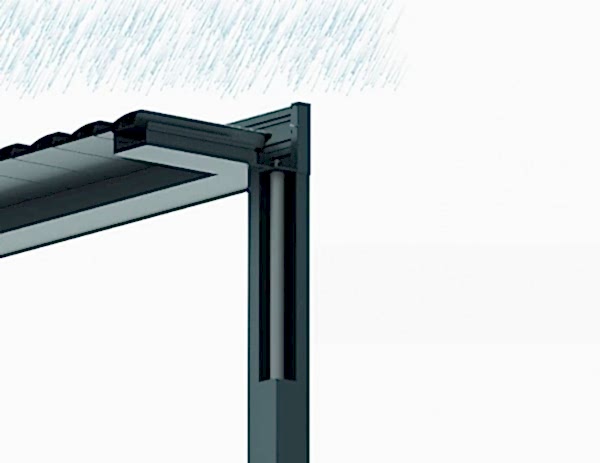 Bioklimatik sistemler, yağmur suyunu toplayacak şekilde tasarlanmıştır. Su panellerden oluklara yönlendirilir. Toplanan su dikme profilinin içinden dışarıya aktarılır. Yağmur suyunun dışarı aktarılması için oluk profiline ve dikme profiline kertme işlemi uygulanır.